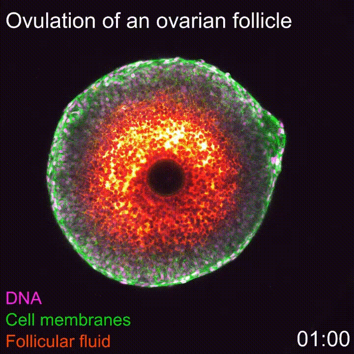 Cada ciclo menstrual, un óvulo da el «salto» hacia la trompa de Falopio, listo para la fecundación. Por primera vez, científicos han logrado captar este fenómeno en tiempo real en folículos de ratón.