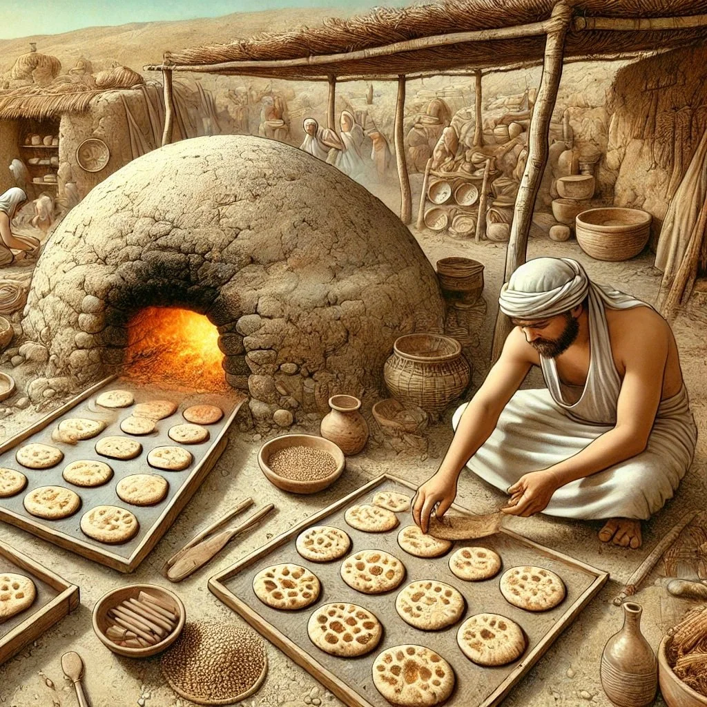Hace casi 7.000 años, los agricultores del Creciente Fértil, en Oriente Próximo, desarrollaron una sofisticada tradición culinaria que incluía la cocción de grandes panes y «focaccias» de diferentes sabores en unas bandejas especiales conocidas como husking trays.