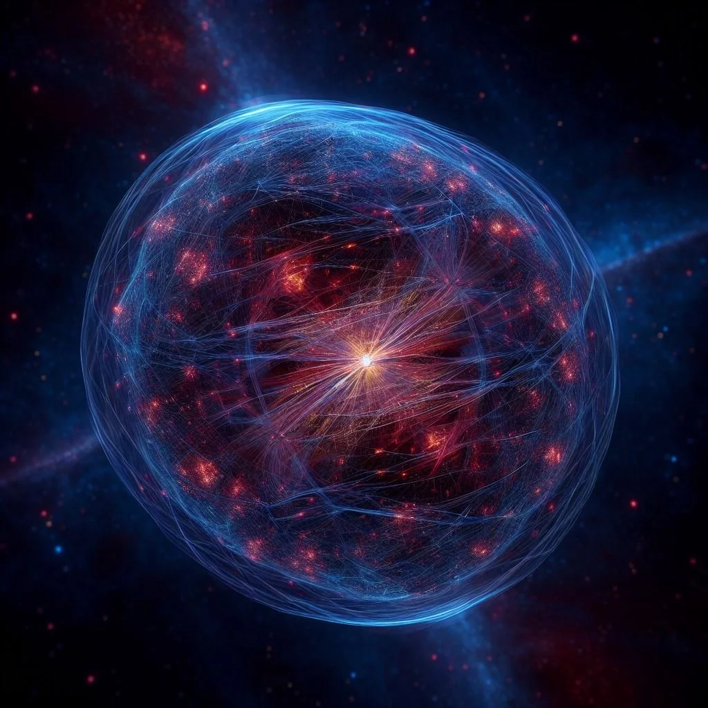 Credit: Conceptual image of an axion, a dark matter candidate, generated by DALL-E 2 from Microsoft Bing.