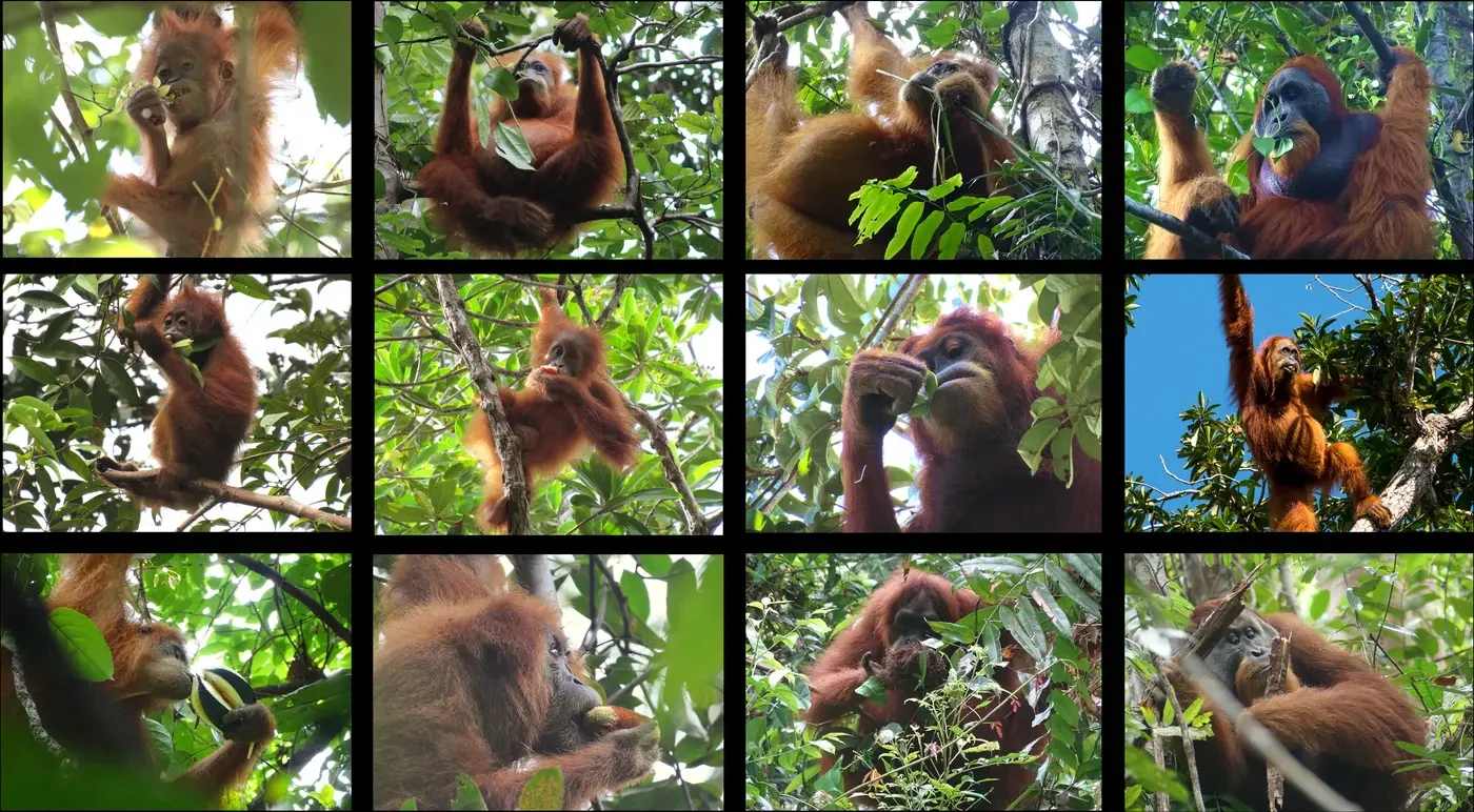 Orangutanes de Sumatra comiendo distintos alimentos. Cortesía: Guilhem Duvot