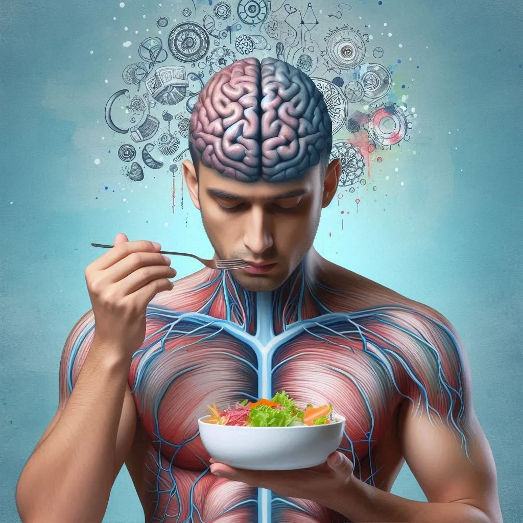Imagen conceptual de la relación entre el apetito y el cerebro humano generada con Copilot.