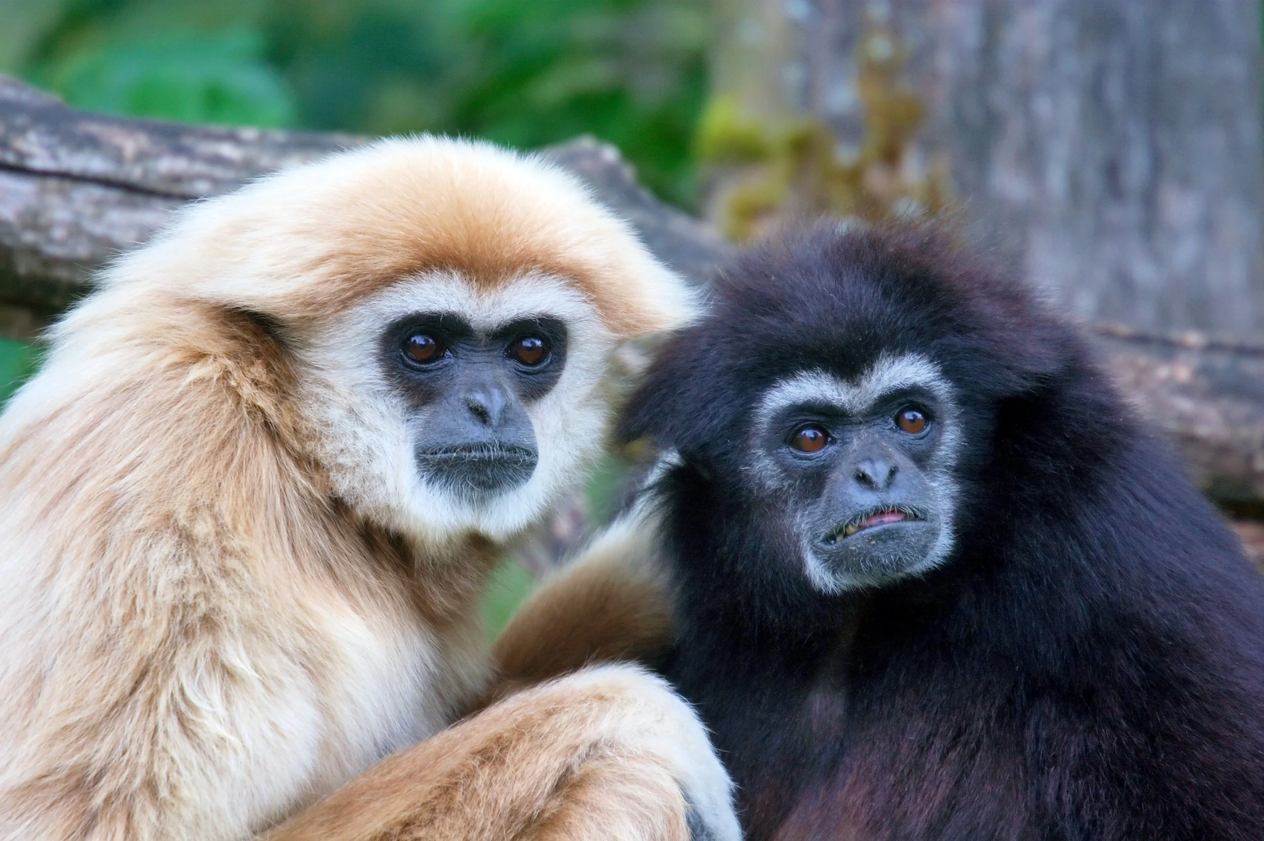 Pareja de gibones de la especie Hylobates lar. Cortesía: MatthiasKabel
