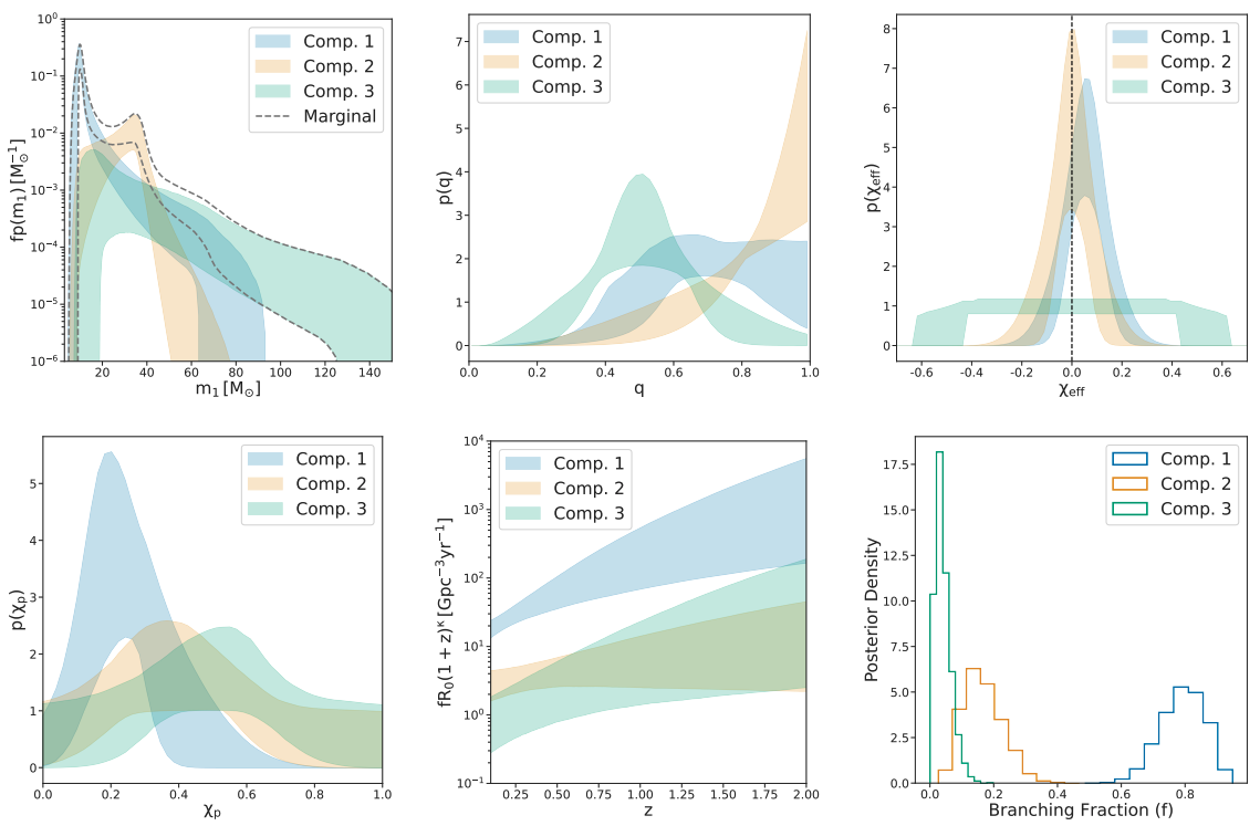 Fuente: Anarya Ray et al. On the Astrophysical Origin of Binary Black Hole Subpopulations: A Tale of Three Channels? arXiv (2026). DOI: https://doi.org/10.48550/arXiv.2603.17987