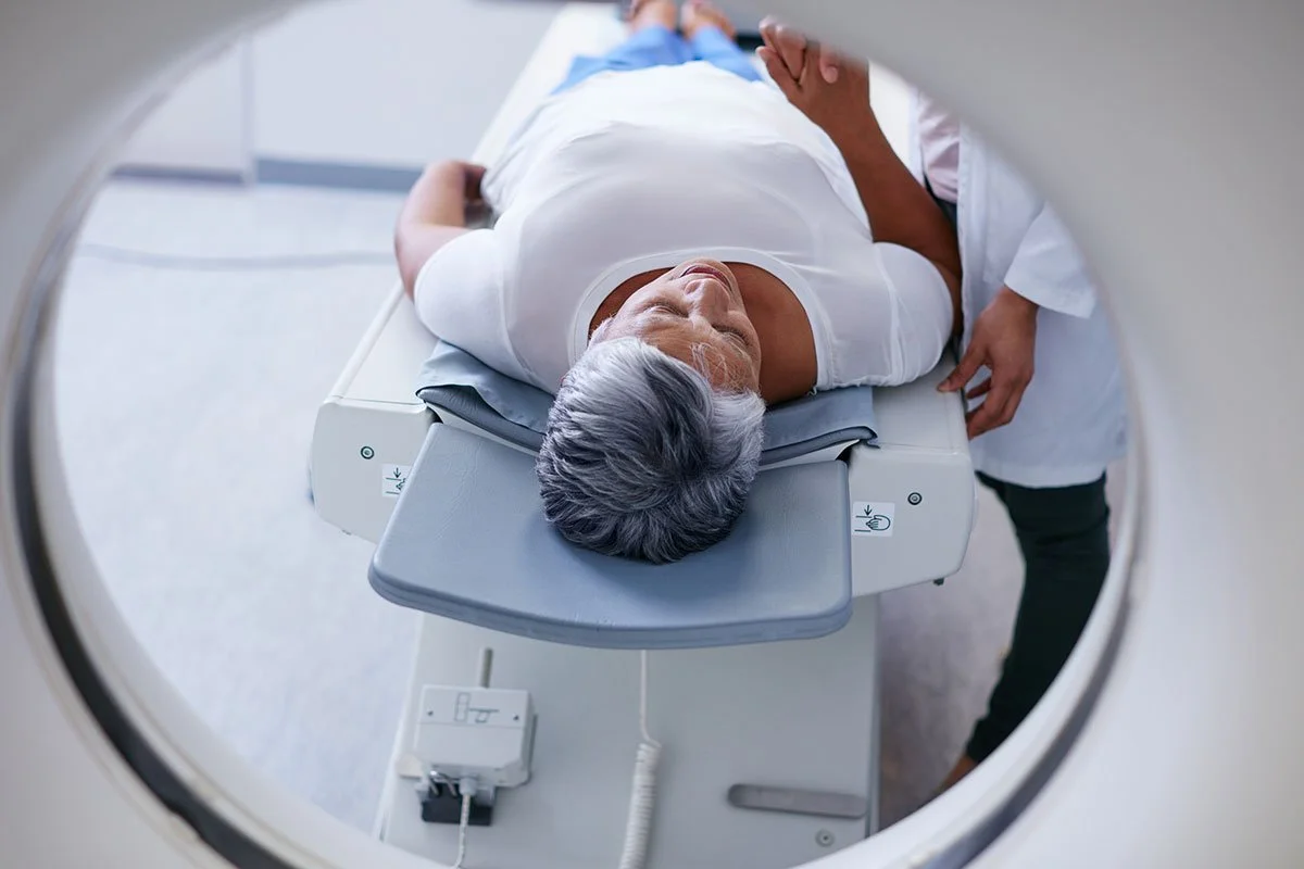 Durante años, detectar estos cambios requería pruebas costosas o invasivas, como la tomografía por emisión de positrones (PET) —arriba— para visualizar depósitos en el cerebro o el análisis del líquido cefalorraquídeo obtenido mediante punción lumbar. Cortesía: Dr. Jamshid Maddahi