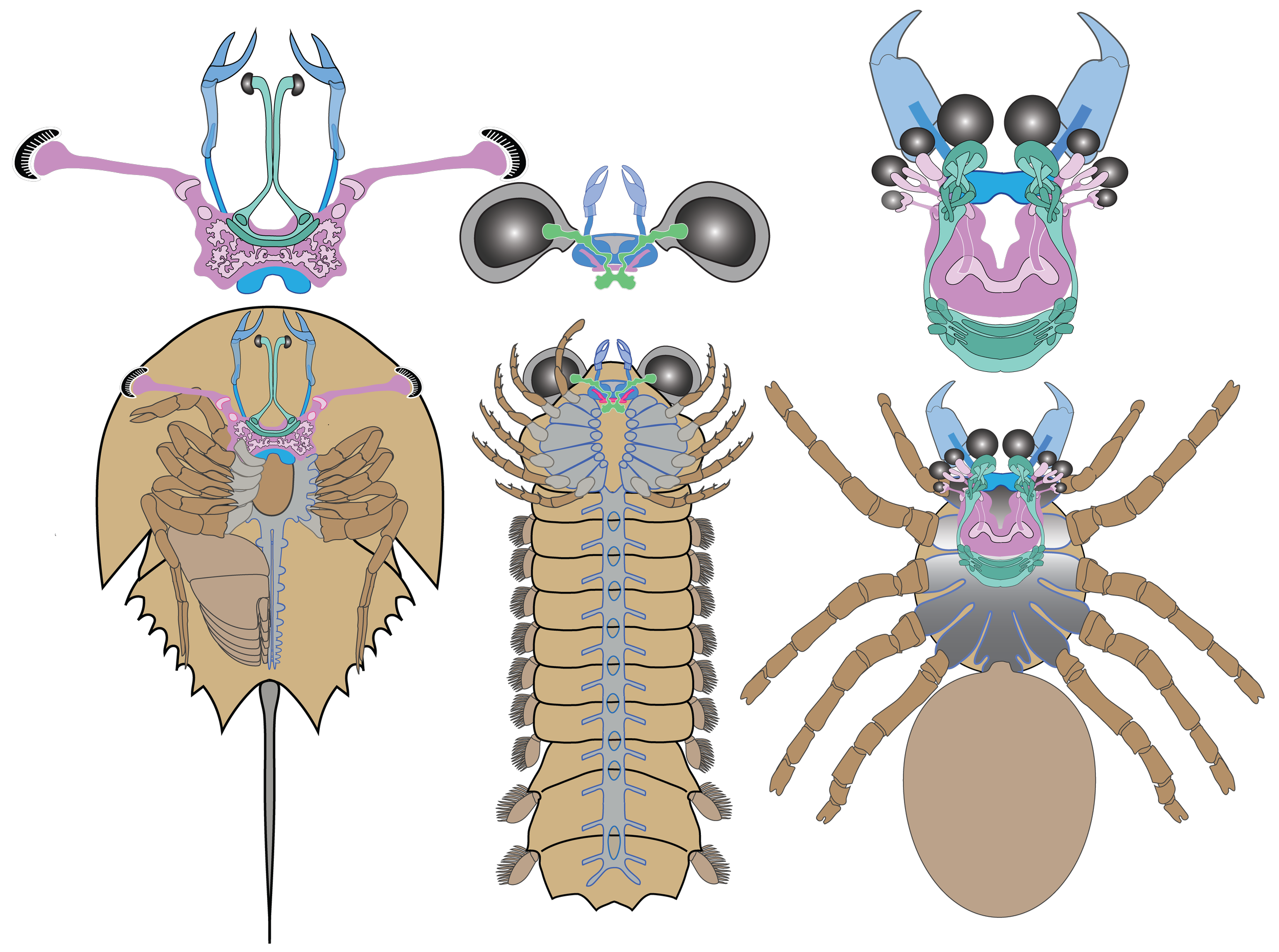 Además, una estructura cerebral no segmentada conectaba directamente con apéndices semejantes a quelíceros, las garras con las que las arañas y escorpiones atrapan a sus presas.