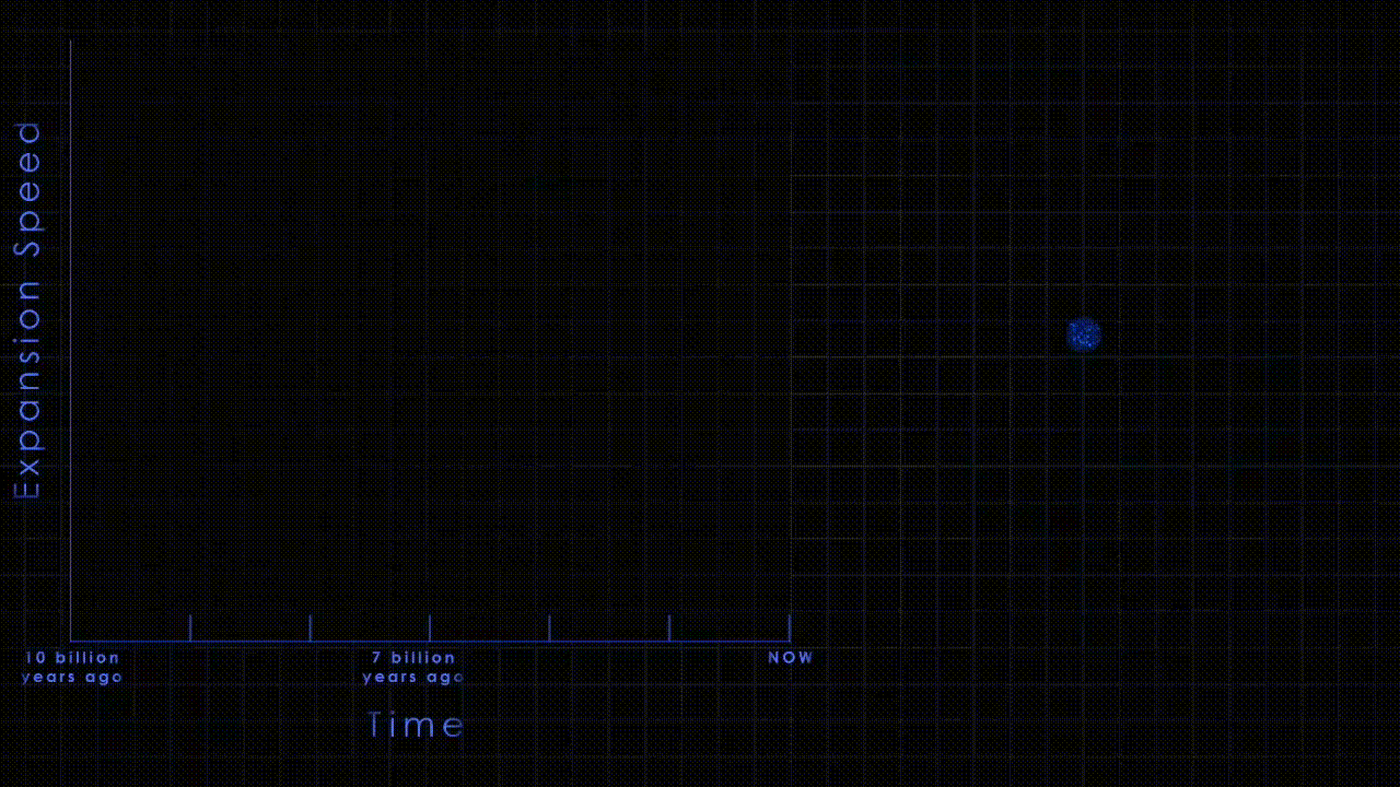 Gráfico de expansión por energía oscura: animación que ilustra la variación en la tasa de expansión del universo debida a la energía oscura. Cortesía: NASA Goddard's Scientific Visualization Studio
